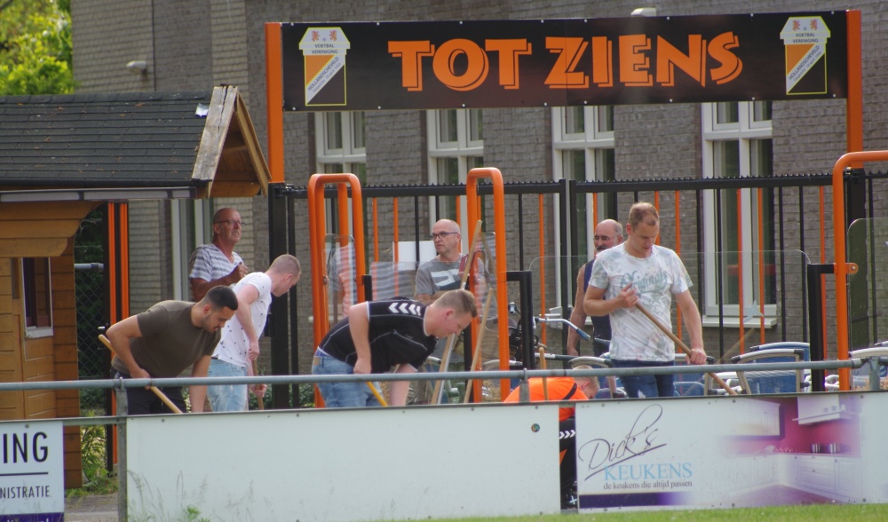 Gezien de warmte die dag en avond was het een hele klus om de dingen te doen die men in gedachten had, maar de mannen die deze avond druk aan het werk zijn geweest mogen trots zijn op het resultaat. Bijna de voltallige 1e selectie, de staf, de klusploeg en overige vrijwilligers die hier aan meegeholpen hebben mogen maar wat trots zijn op het resultaat.