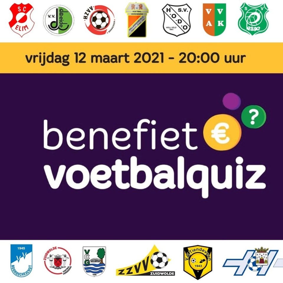 HOOGEVEEN - Het Corona-virus houdt ons land nog altijd in zijn greep. De deuren van de sportcomplexen zullen de komende tijd helaas nog gesloten moeten blijven. Dit betekent ook dat de voetbalclubs de komende tijd geen inkomsten kunnen genereren in de gezelligste kantines van het land. Daarom is het idee ontstaan om een Benefiet Voetbalquiz te organiseren, waarbij alle regionale clubs aan mee kunnen profiteren.VV Zuidwolde hebben aangegeven mee te doen.