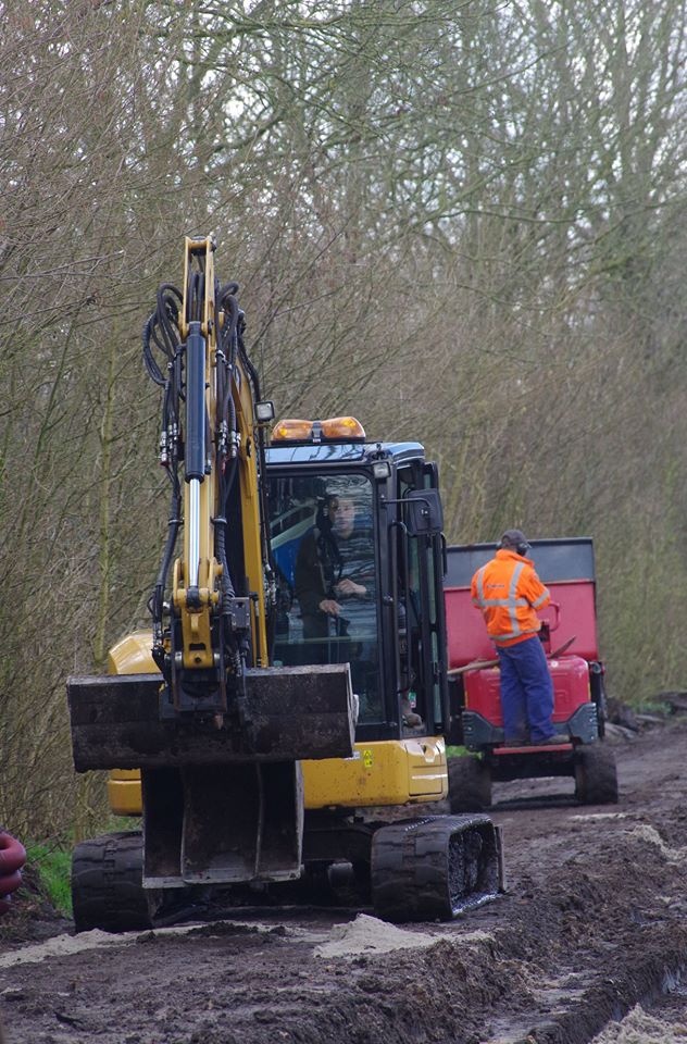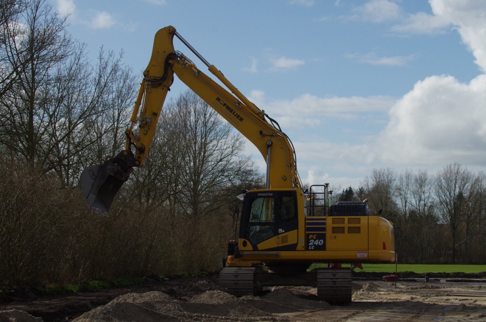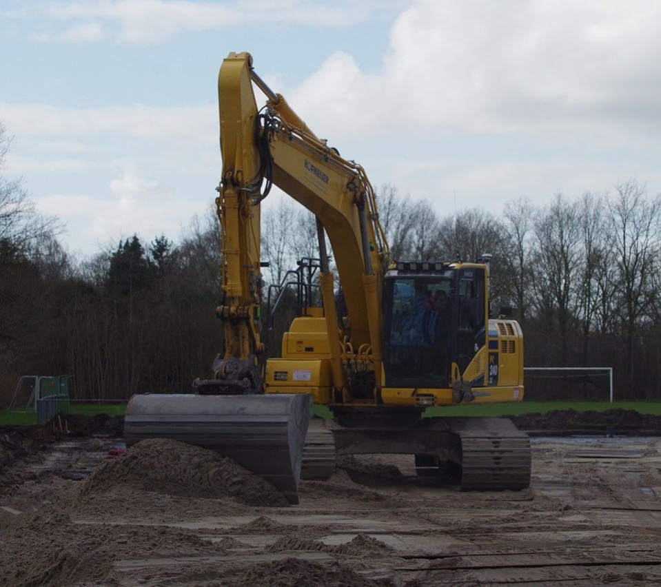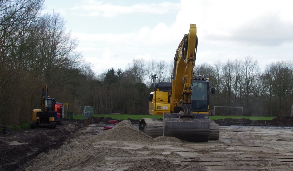 Er wordt weer hard gewerkt aan het nieuwe kunstgrasveld.