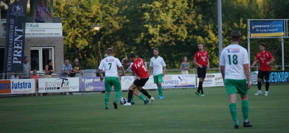 Het eerste kwartier was voor SCN. Een kopbal van Roy Zwiers kon net over getikt worden door Lennard Vos. Verder bleef Hollandscheveld overeind ook omdat Gerrit Vrielink reddend kon optreden. Daarna nam Hollandscheveld het initiatief. SCN keeper Leon Reitsma stond goed en maakte meerdere schoten en kopballen onschadelijk. Fysiek leek Hollandscheveld wat fitter en drukte door. Na een half uur kwam de 0-1 van Robin Bijl. Hij speelde zich goed vrij na een mooie combinatie tussen Roy Strijker en Matthijs Snippe. Met een briesje en wolkjes begon de 2e helft, op het prima veld van SCN met sproei-installatie. Meteen na rust de 0-2 , op nieuw Robin Bijl na een prima combinatie in de 16 meter. SCN leek via Roy Zwiers terug te komen. Hij kwam alleen voor de keeper maar Jurgen Vos redde met een sliding. Een kwartiertje na rust de 0-3, een lange voorzet van Roy Strijker werd keurig ingekopt door Luuk van Eck. Bij Hollandscheveld kwam Tim Vos binnen de lijnen na een lange revalidatie en verdedigde weer goed. De goed leidende scheidsrechter Michiel Okken kende SCN een penalty toe. Danny Kuiper was trefzeker voor SCN vanaf 11 meter en het was 1-3. De hoop voor SCN was weer terug. Robin Bijl maakte zijn hattrick op aangeven van Joris Snippe, 1-4. Het laatste kwartier leek Leon Reitsma zijn SCN doel schoon te houden. Vaak redde hij prima. Toch kwamen er nog 2 doelpunten. Eerst de 1-5 door Luuk van Eck. En vlak voor tijd zette Rodney Olde goed door en maakte de 1-6, tevens de eindstand. Een mooi debuut voor Henk Kroezen, de nieuwe elftal-leider van Hollandscheveld. Aanstaande donderdagavond 18 augustus speelt SCN tegen Protos. En Hollandscheveld tegen Tiendeveen. Beide wedstrijden om 19.00 uur bij v.v. Hollandscheveld.