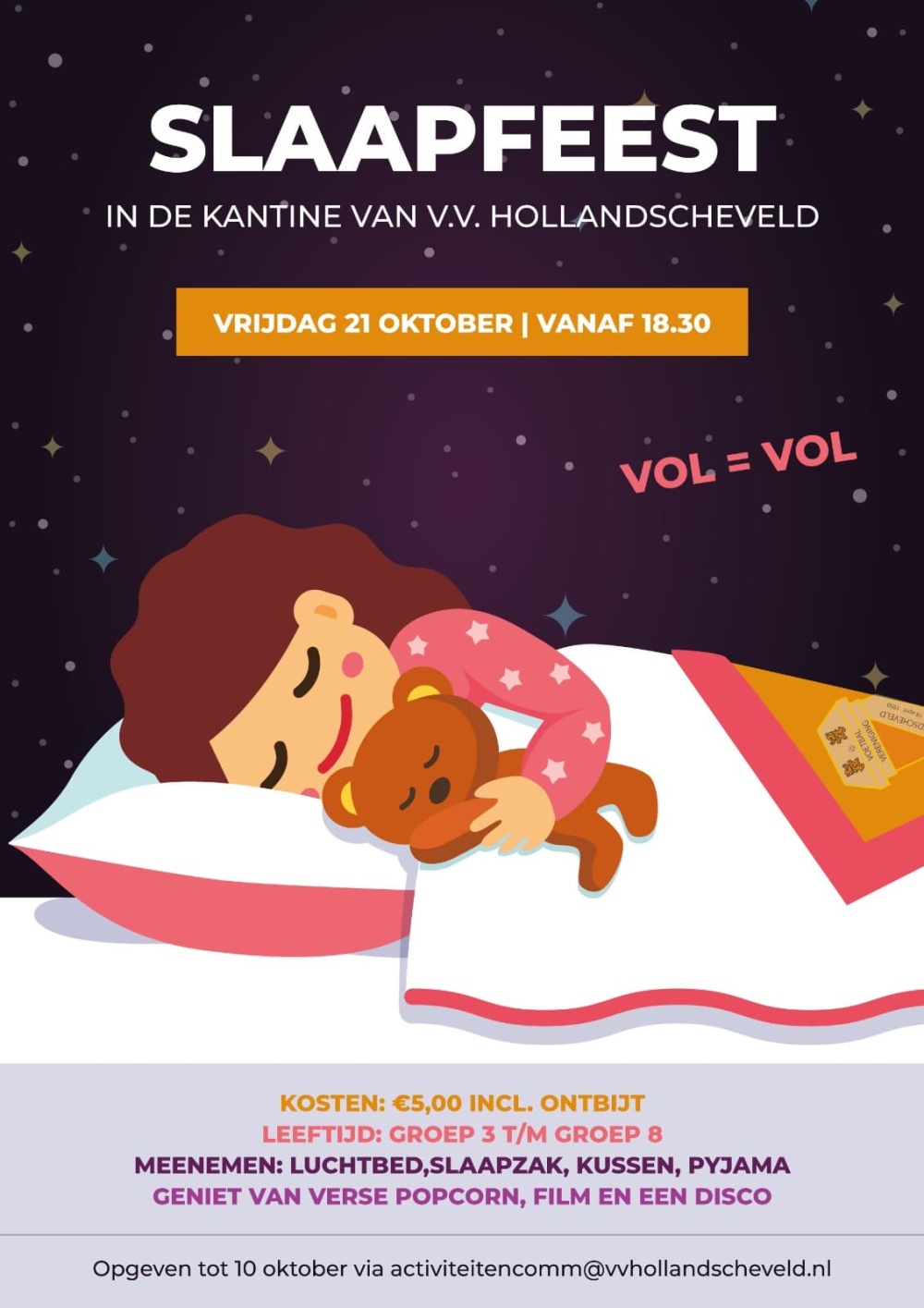 Slaapfeestje in de kantine 21 oktober!