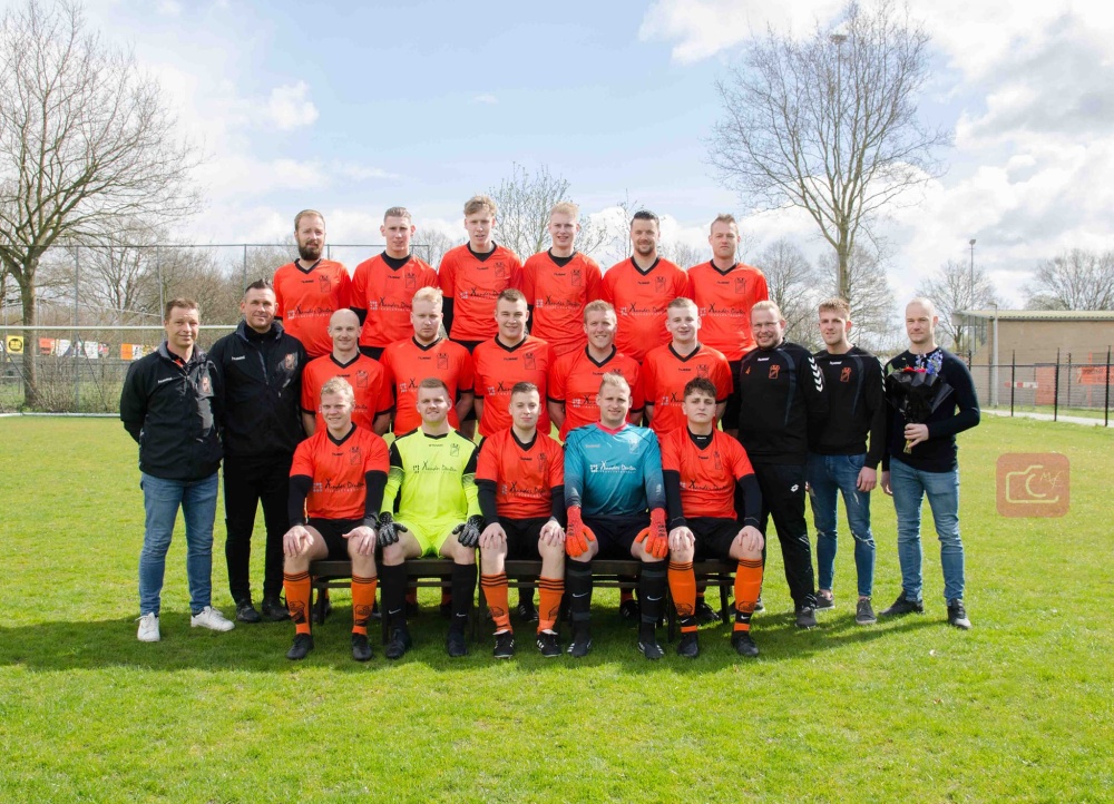 De mannen van trainer Harry Tibben en leider Sebastiaan ten Caat zijn in het nieuw gestoken door tegelzetbedrijf Xander Deuten. De mannen van " het 2e" zijn hier erg blij mee. Op de foto de selectie van vv Hollandscheveld 2 met sponsor Xander Deuten