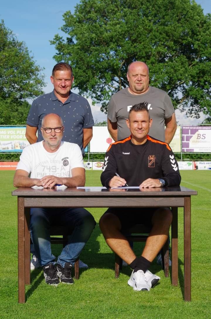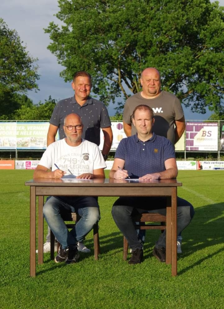 De mondelinge afspraken waren al lang gemaakt, maar het officiƫle gedeelte moest nog plaatsvinden. In een heerlijk avond zonnetje werden de contracten getekend. Onder toeziend oog van voorzitter Wout Smit, Gert Scholing (voetbalzaken) en Karlo Mol (TC) werden de contracten ondertekend.