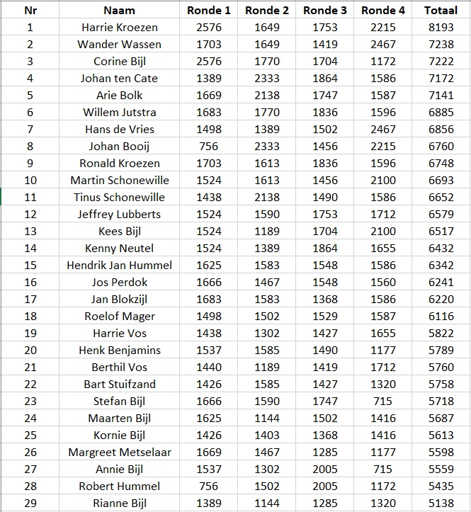 Deze avond deden er 29 kaarters mee en werd het een mooie avond.