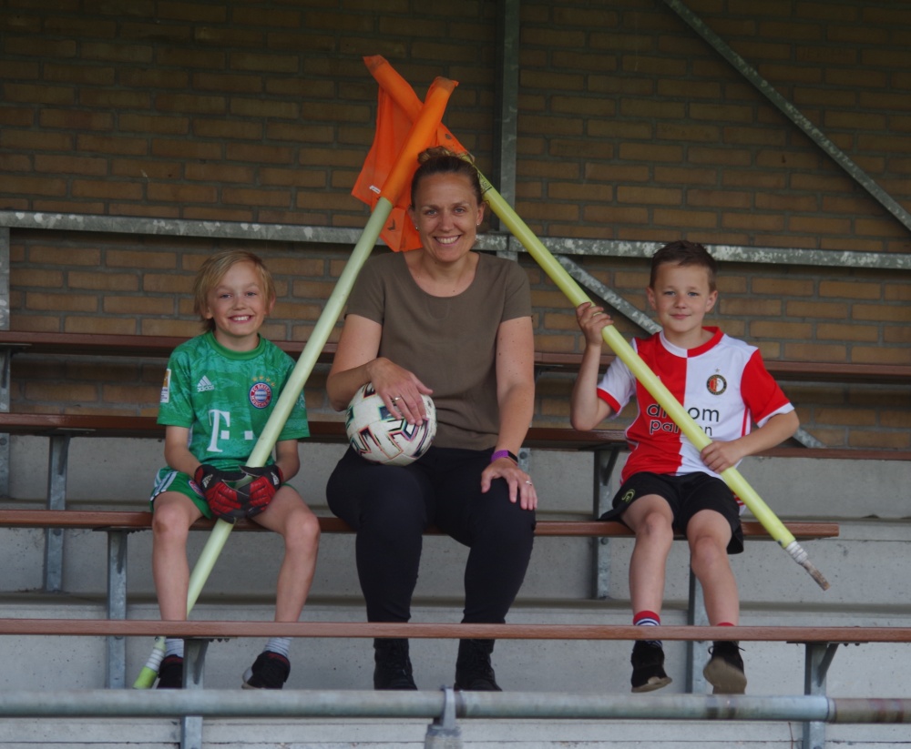 Toen Gideon ging voetballen ben ik inderdaad een poosje zijn trainster geweest, maar ik was veel te fanatiek. De kinderen hadden lol en Gideon had het drukker met gras plukken dan met voetballen. Maar ik was gefrustreerd, omdat ze meer lol hadden dan dat ze daadwerkelijk voetbalden. Stoppen leek mij beter en dat heb ik dus maar gedaan.