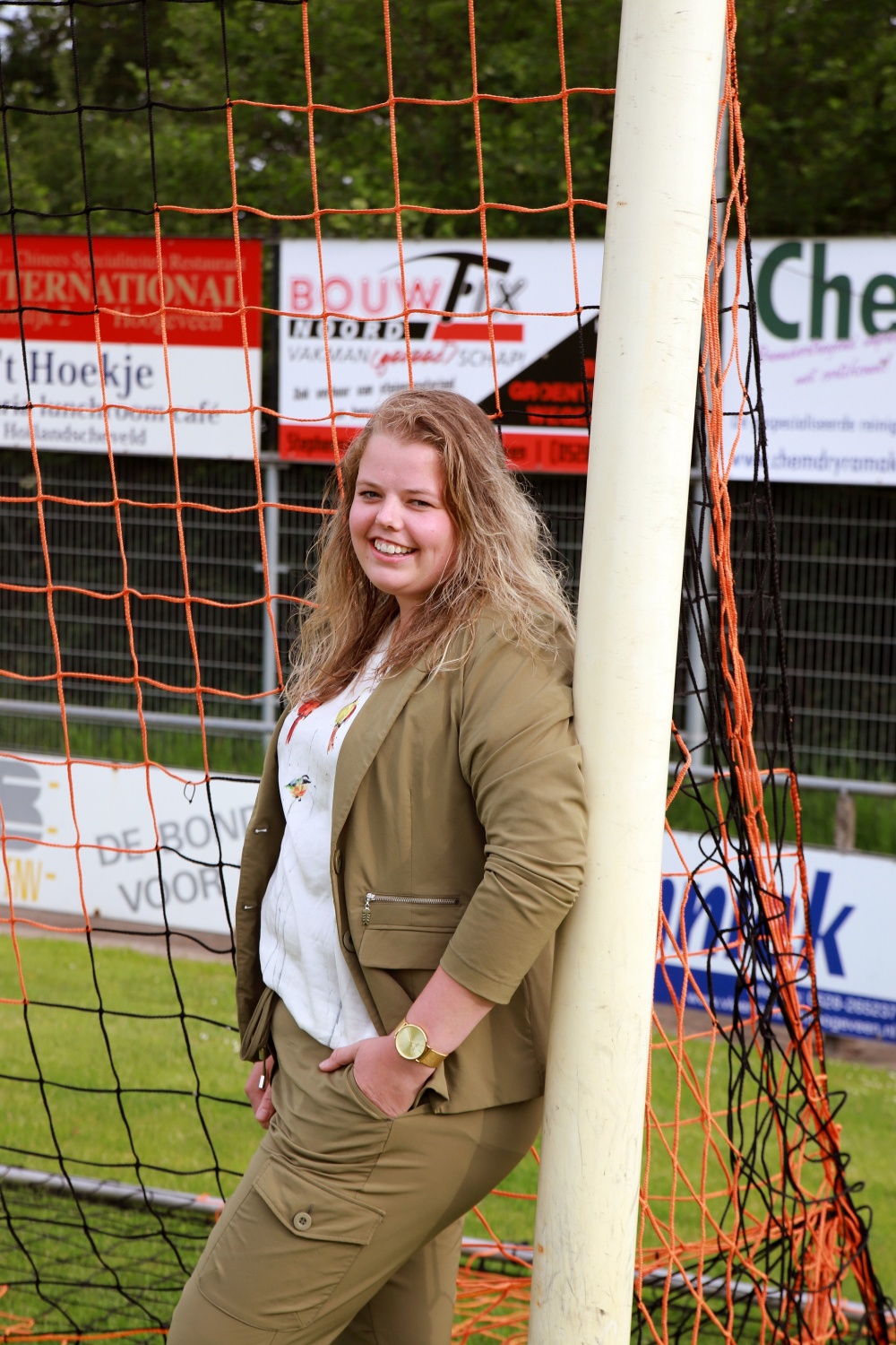 Ik ben begonnen met voetballen toen ik 11 jaar was, na jaren van zeuren bij mijn moeder. Ik voetbalde altijd al op het schoolplein samen met de jongens uit de klas. En op een dag vroeg iemand van school als ik in een nieuw meisjes team wou voetballen bij TOV in Baarn, daar waar ik ook op school zat. Dit heb ik met 2 handen aangegrepen. De eerste wedstrijd vergeet ik nooit weer, 9-0 verloren, waar ik de tweede helft wel op doel wou, want ik was niet bang voor de bal, eigenlijk ben ik daarna nooit meer van de doellijn af geweest. Totdat ik hier kwam wonen en keepen dat wou ik niet meer. Een superleuke tijd gehad, daar waar ik in de MD2 kwam en het eerste jaar gelijk kampioen werd! Dus toen ik hier kwam wonen zei ik dat ik gelijk weer op voetbal wou en kwam ik bij HH’97 MC1 waar Stefan en Frits de trainers waren. Na 1,5 jaar ging ik naar dames 2 van v.v. Hollandscheveld bij Koert als trainer. Nu paar jaar verder voetbal ik hier nog steeds met alle plezier omdat ik het hier erg na mijn zin heb. Vier jaar terug ben ik ook begonnen om op vrijdagavond te voetballen waar ik weer de keepershandschoenen heb aangetrokken. Afgelopen winter zijn we ook met dat team kampioen geworden.